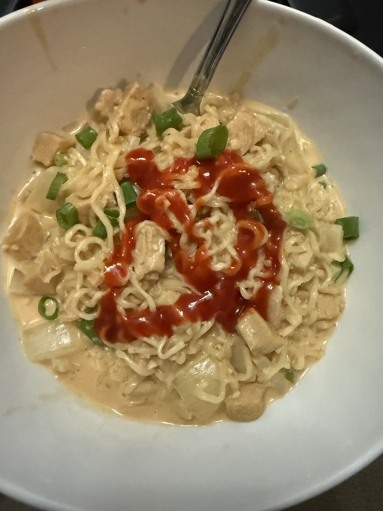 Fiery Chicken Ramen with Creamy Garlic Sauce